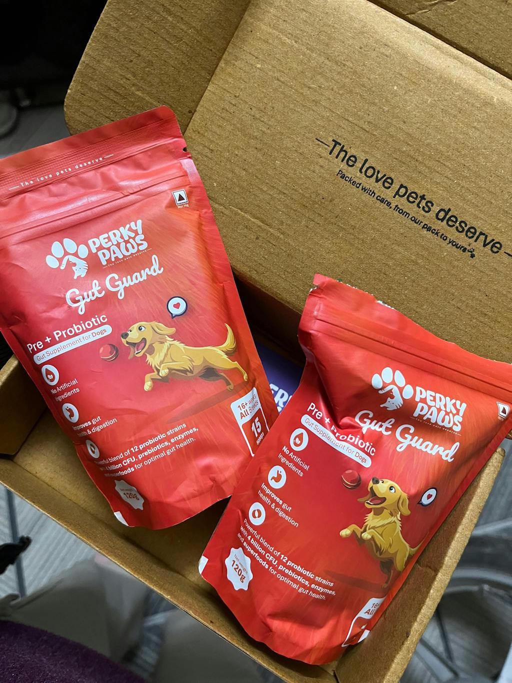 Many pet parents start noticing positive changes within the first few weeks — like better digestion, reduced itching, improved appetite, or more playful energy. But the real transformation happens gradually. Gut Guard isn’t a quick-fix medication — it’s designed to become part of your dog’s daily wellness routine, just like good food, walks, and regular care. The nutrients in our formula work best when given consistently, supporting your dog’s gut health, immunity, and overall vitality over time.