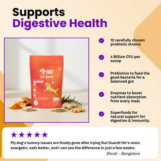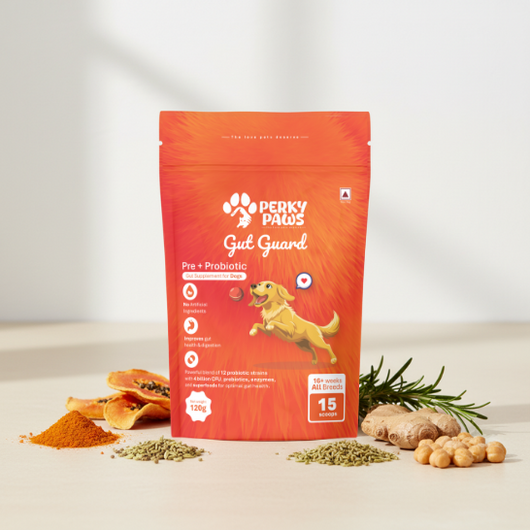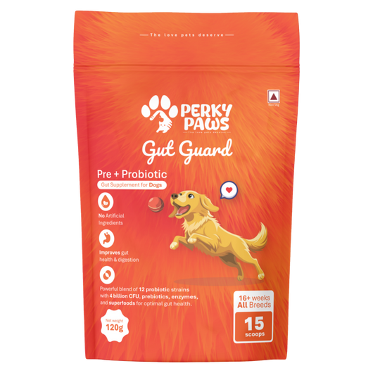 Gut Guard by Perky Paws is a complete digestive care solution for dogs — combining 12 probiotic strains, natural prebiotics, and digestive enzymes to support gut health, reduce bloating, and improve stool consistency.Formulated with pumpkin, papaya, ginger, and other gut-friendly superfoods, this powder mixes easily into your dog’s meals and works from within to balance their microbiome naturally.