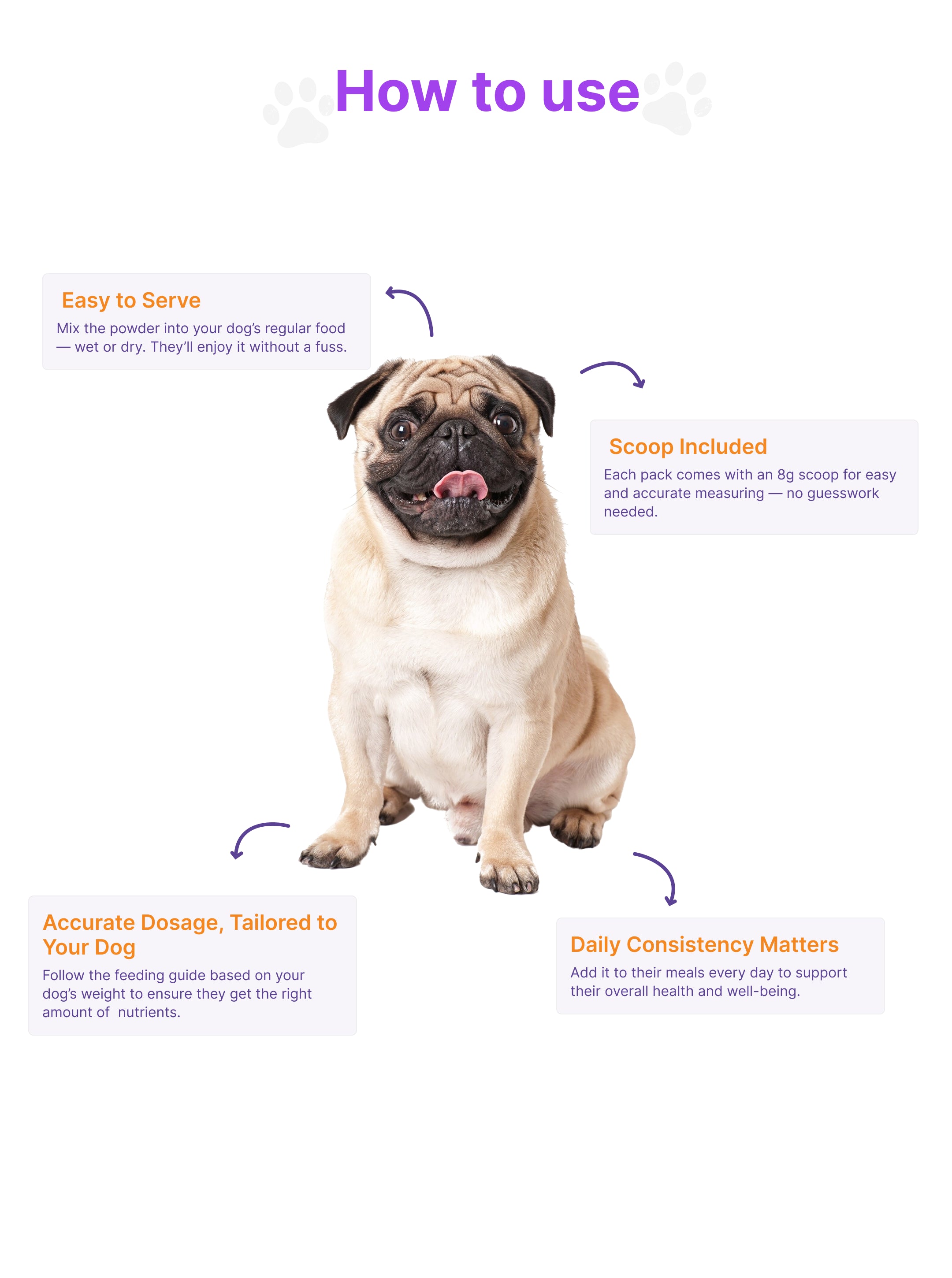 For dogs new to supplements, begin with half the suggested amount for the first 10 days. Slowly work up to the full dose — this gentle approach helps their system adjust with ease.